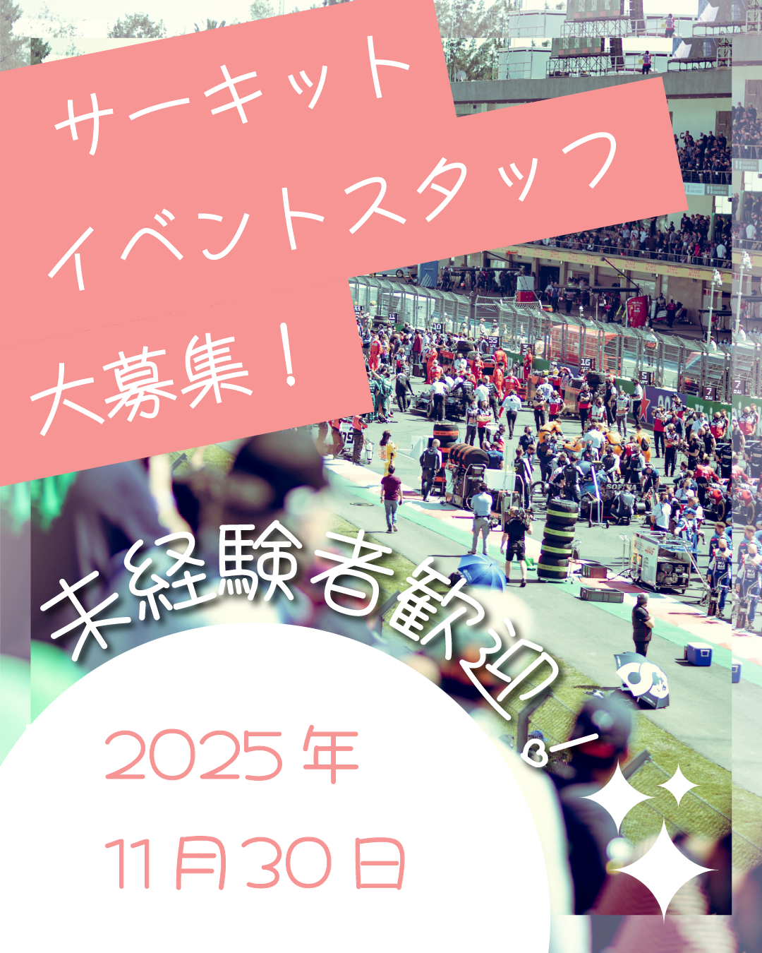 | 職種 | 【栃木県】単発バイト 11/30(日)のみ もてぎサーキットでのイベントSTAFF |