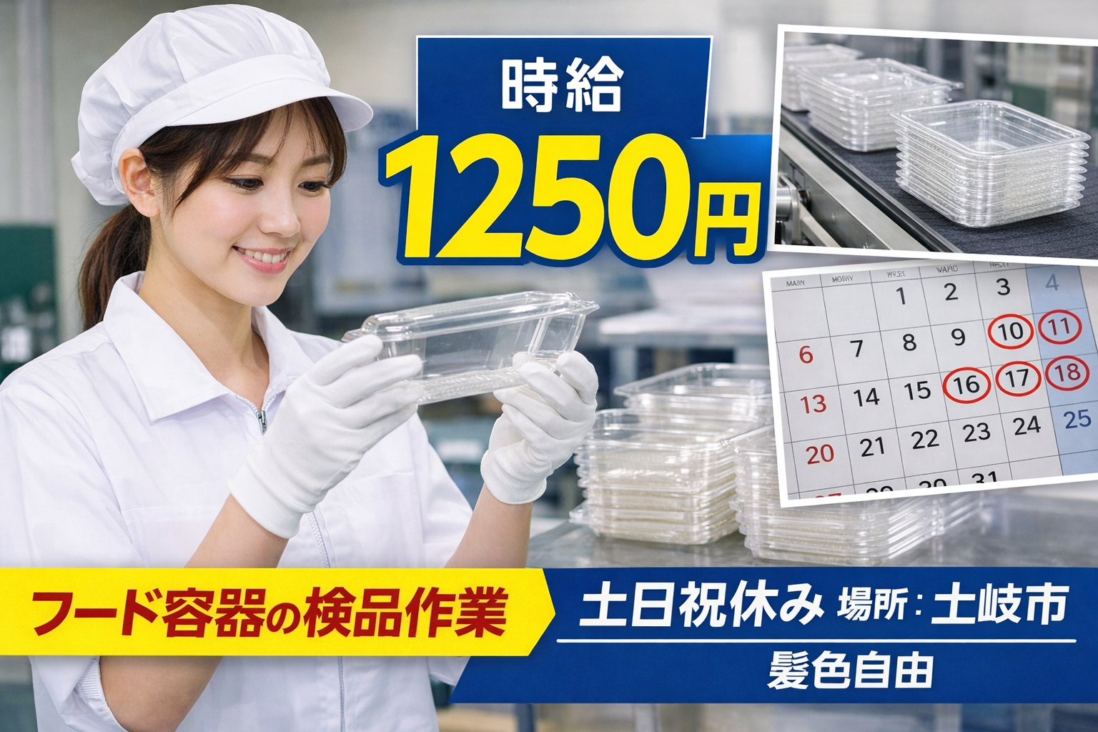 | 仕事内容 | 【仕事内容】 \人気のモクモク軽作業♪/ フードケースの検品作業をお願いします! ▼具体的には… ・キズや汚れがないかチェック ・不良品の仕分け ・ラベル張り →とってもシンプル! 未経験の方でもすぐに覚えられます♪ 「難しい作業はちょっと不安…」 そんな方にピッタリのお仕事です♪ お願いするのは、 フードケースのチェック作業! ・キズがないか見るだけ ・不良品を分けるだけ ※扱う製品は軽いので力仕事なし◎ 大人気の求人なのですぐに枠が埋まってしまいます!! まずはお話だけでも構いません! お早めに応募ください!! |
