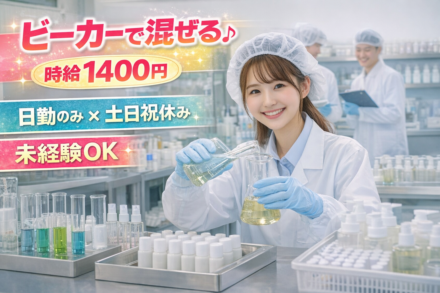 【美濃加茂】時給1400円★未経験OK/理科の実験みたい♪化粧品のカンタン検査