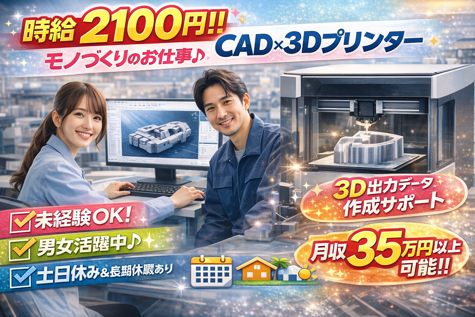 | 仕事内容 | ◆お仕事内容 設計、CADに興味がある方、大募集(#^^#) もちろん経験者は優遇ありです(^^)/ 経験無くても興味があればOK♪ 先輩方が優しく教えてくださいますのでご安心ください☆ 空調完備で働きやすい(^_-)-☆ 正社員登用制度あり(^^)/ 長期・安定のお仕事です♪ お気軽にお電話、ご相談ください(/・ω・)/ |