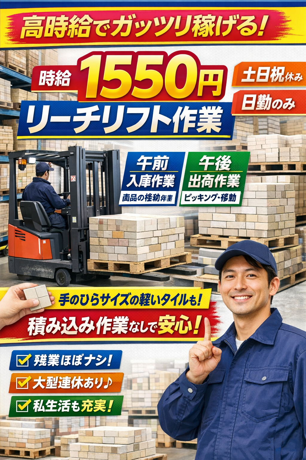 【常滑市】軽作業/リフト◎昼勤のみで時給1500円(∩´∀`)∩